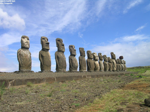 O que ninguém sabe explicar ao certo é como um povo da Idade da Pedra, sem contato com outras culturas ou influências, conseguiu desenvolver tal técnica de criação. Alinhados de costas para o oceano, há cerca de 900 moais espalhados por toda a extensão da ilha, em meio a altares de veneração chamados ahus, plataformas de até 60m de comprimento e 7m de altura que agrupam as esculturas. O maior dos ahus é o Tongariki, com 15 estátuas.